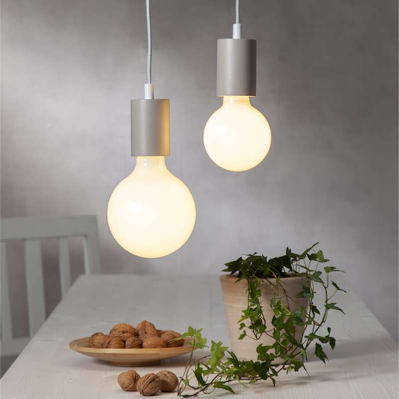 Opal lampa med 3-stegs klickdimring! Ljusstyrkan ändras enkelt genom slå av och på strömbrytaren. Välj mellan 80lm, 400lm eller 800lm. Ljusfärgen är 2700K och den har E27-sockel. Startar alltid på lägsta ljusstyrka.
