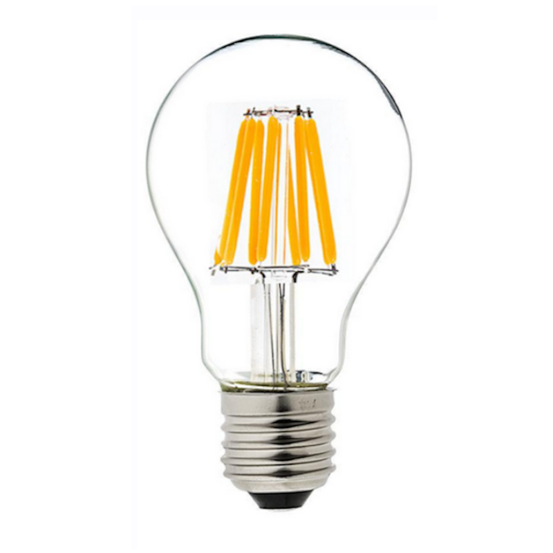 Lampan finns i både klar och matt, är 10 gånger energisnålare än den vanliga glödlampan och brinner c:a 20.000 timmar.