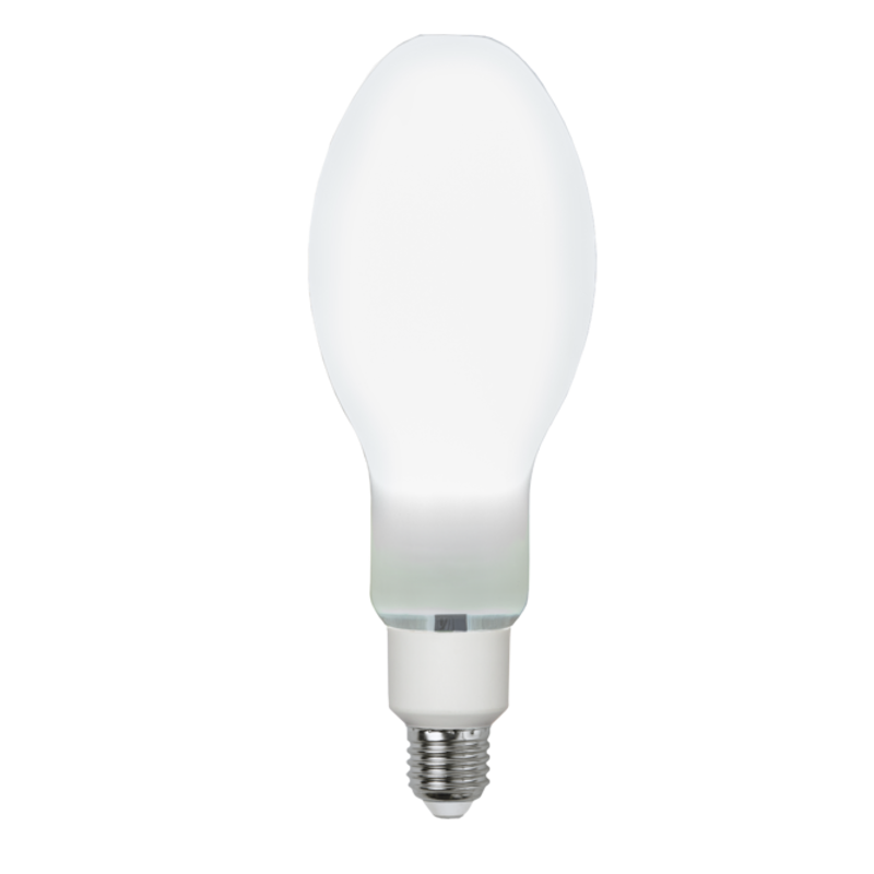 LED lampa med högt lumen. Ljusfärgen är Daylight, 6500K. Ersättare för kvicksilverlampor och passar i tex stora utrymmen, på garageuppfarter eller som gångvägsbelysning. För att förlänga livslängd och minska elförbrukning kan drossel/kondensator förbikopplas