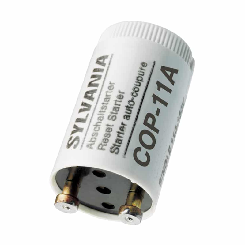 Säkerhetständare modell COP 11-A för T8, T12 och cirkelvarianter. 18-65W. En glimtändare med brytfunktion minskar risken för brand på grund av överhettning i armaturen och är ett krav i många miljöer. Safety starter med brytare används till konventionella drivdon. Säkerhetständaren bryter när ljuskällan börjar blinka och återställs med en knapptryckning.