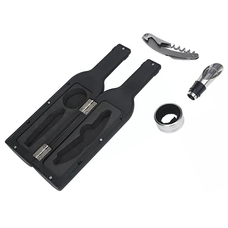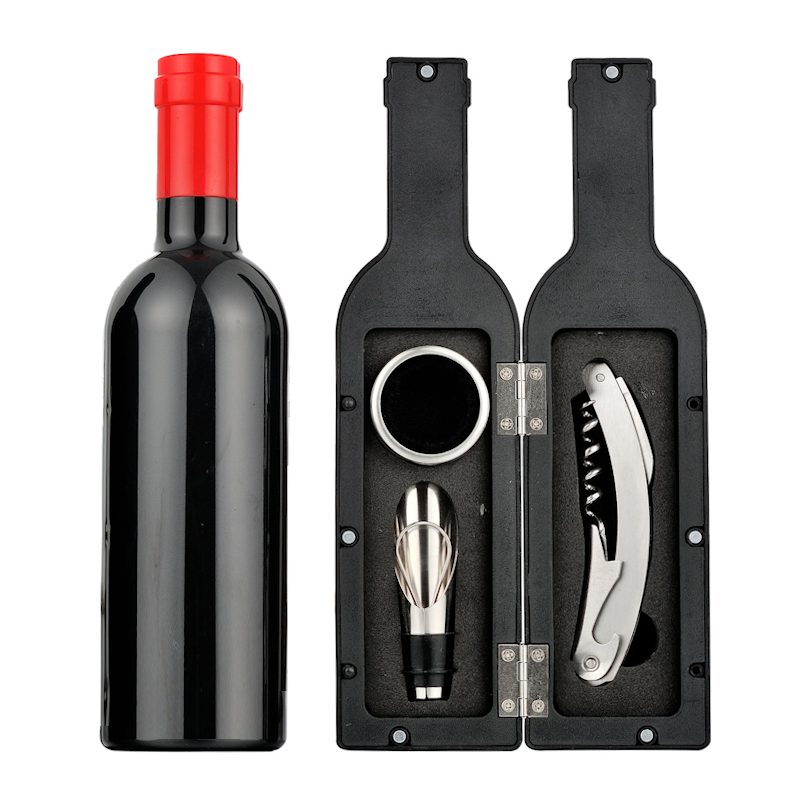 Vinsset i tredelars presentförpackning, sjöhästkniv vinproppar, flaskformad design, fin gåva till släktingar och vänner som minnessak. Passar i vinstället, hyllan eller hemmabaren. Elegant Hällpip Stilfull Öppnare, Högkvalitativ Korkskruv, Hållbar Öppnare, Barverktyg, Vintillbehör, Vinälskare, Samlare.
